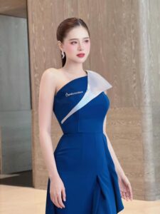 ชุดชั้นในสีน้ำเงินเข้ม มีเหลื่อมสีเงินปะเอาไว้ บอกเลยว่าชุดดูหรูหราไฮโซมาก แล้วน้องก็หยิบมาใส่ถ่ายให้เราได้รู้สึกแบบนั้นจริง ๆ ดูดีมากทั้งสีหน้าผม