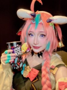 ว่าต้นฉบับเป๊ะมาก ผมสีม่วง ชุดเดรสเปิดหน้าอก มาครบหมด แต่เรามองไปเห็นอีกอันหนึ่งที่น้องทำดีมาก nhompangz.toasty มาในเวอร์ชั่นเรสควีนสวยเลย ชุดแน่นรัดรูปสีขาวแดง ทรงดีจัด บอกตามตรงว่า ทรงนี้เหมือนกับเป็นกราเวียร์ ไอดอล จาก ประเทศญี่ปุ่น เลยก็ว่าได้